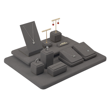 Maßgefertigter Deluxe Anpassbarer LOGO Luxus Mikrofaser Grauer Schmuck-Präsentationsständer mit OEM-Service